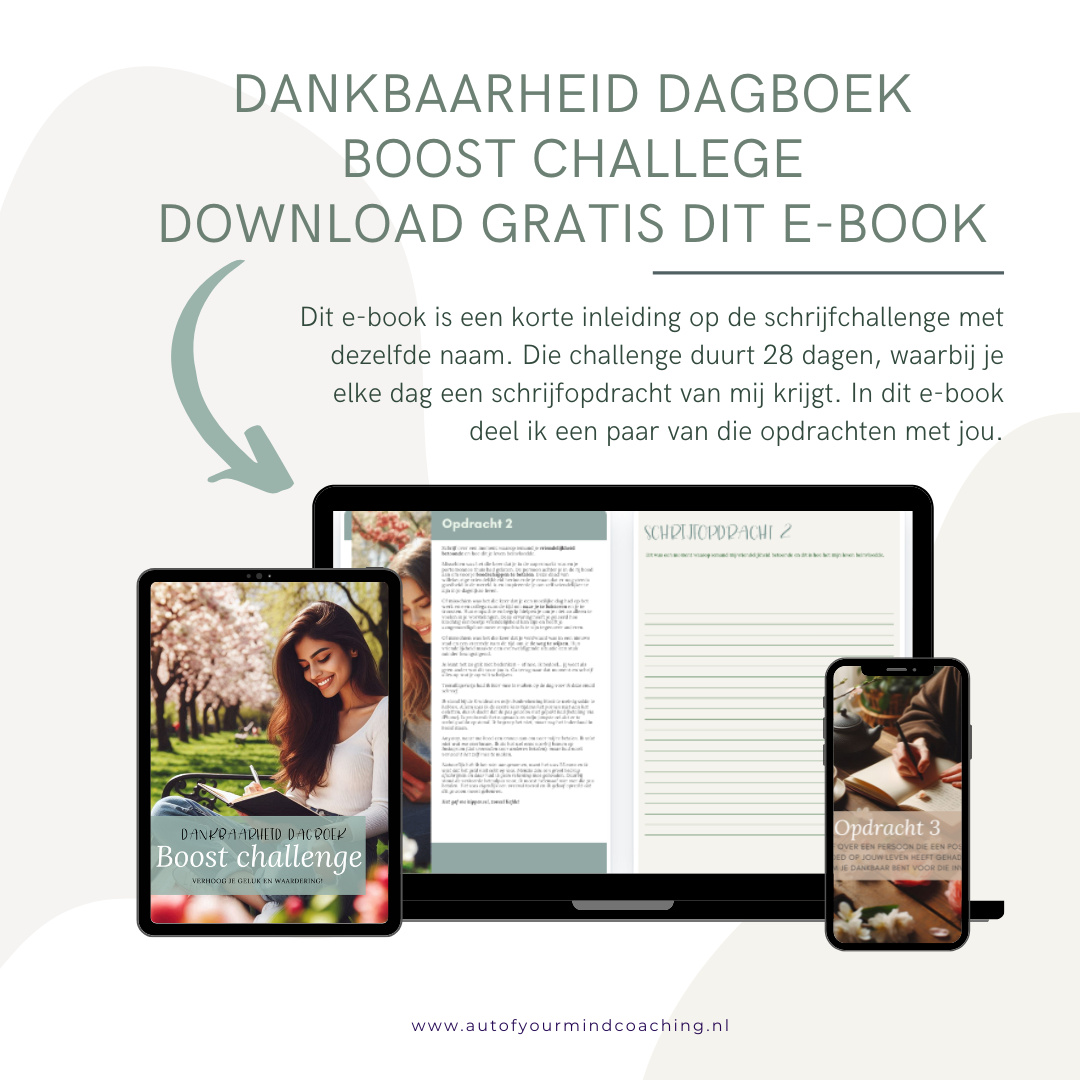 Ik geef je in dit e-book handvatten om je te richten op schrijven naar meer dankbaarheid. Hierdoor leer je meer waardering te krijgen voor wat je nu hebt, in plaats van te focussen op wat je mist.
